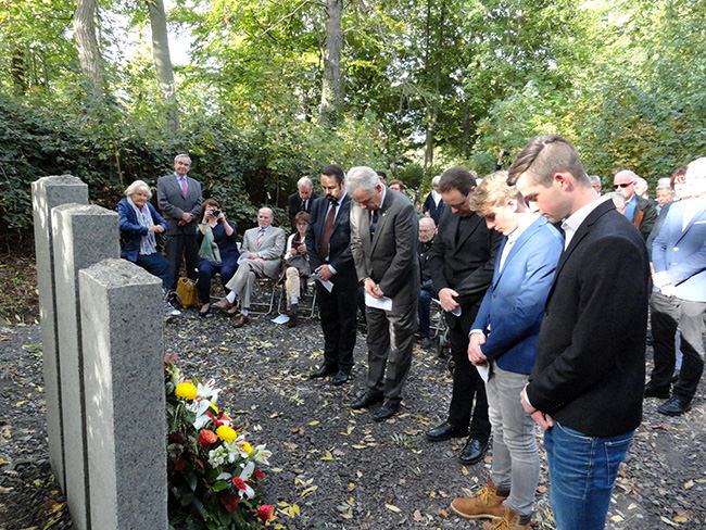 Dies machte die meist betagten Anwesenden recht betroffen, denn diese beiden Jugendlichen waren genau im Alter der damaligen Delinquenten. Sie betonten, wie wichtig Geschichte für diejenigen sein sollte, die die Zeit des terroristischen Nationalsozialismus nicht erlebt hatten. Das geistliche Wort sprach Bernhard Dobelke, Pfarrer der katholischen Kirchengemeinde Rheinbach.