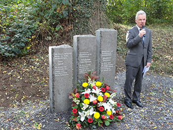 Vor den zahlreichen Anwesenden betonte Bürgermeister Stefan Raetz, dass das Geld für das Mahnmal durch Spenden aus der Bevölkerung zusammengekommen sei. Betroffen war man von der Schilderung der Situation, wie sie bereits früher von dem Journalisten Jost dargestellt worden war (Blick aktuell Rheinbach/Swisttal Nr. 22/2017):