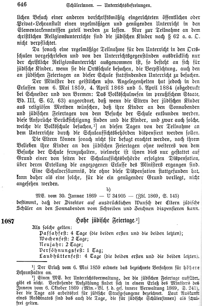 Der Band „Die Höheren Lehranstalten für die weibliche Jugend in Preußen“ differenziert zwischen evangelischen und jüdischen Feiertagen: