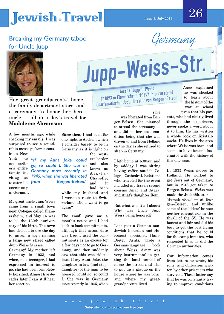 „Jewish Travel“ vom Juli 2013