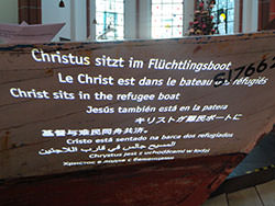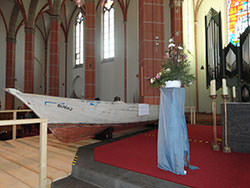 Es diente Kardinal Woelki bei der Heiligen Messe zu Fronleichnam auf dem Roncalliplatz als Altar und ist seither Symbol und Mahnmal der Flüchtlingshilfe im Erzbistum Köln. Unter der Überschrift „Alle in einem Boot“ ist das Flüchtlingsboot nun auf seiner Reise durch die Diözese in der Euskirchener Herz-Jesu-Kirche gelandet. In dem winzigen Boot saßen vor 2 Jahren etwa 80 Flüchtlinge, die von der maltesischen Armee aus den Händen gewissenloser Schleuser gerettet wurden.