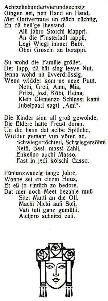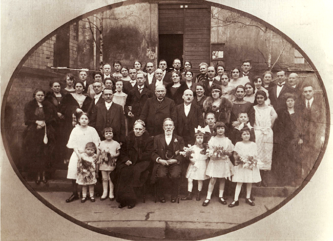 Sie heirateten am 2. Februar 1864, wohnten in der Domstadt Köln, Rheingasse 24, hatten ingesamt 17 Kinder (!!) und feierten 1924 nach 60 Jahren ihre diamantene Hochzeit. Kein Wunder also, dass das mir vorliegende Foto eine große Gesellschaft zeigt.