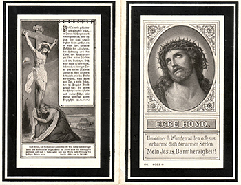 „Totenzettel“ sind einfache oder gefaltete Zettel mit den wichtigsten Lebensdaten eines Verstorbenen, die meist im Rahmen der Totenmesse an die Trauergäste verteilt werden. Der Brauch war früher im gesamten katholischen Europa verbreitet und wird regional immer noch gepflegt.